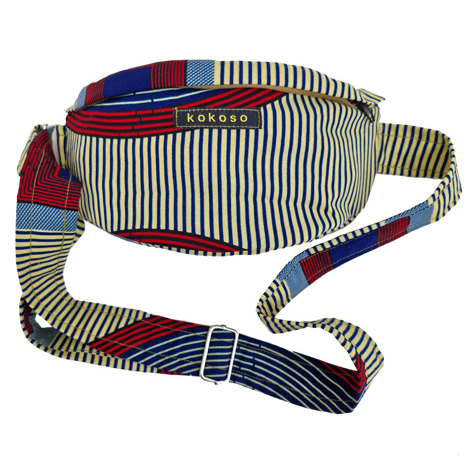 Sac banane, doublé, en blockprint imprimé coton avec une poche devant, une à l'intérieur et une à l'extérieur derrière près du corps