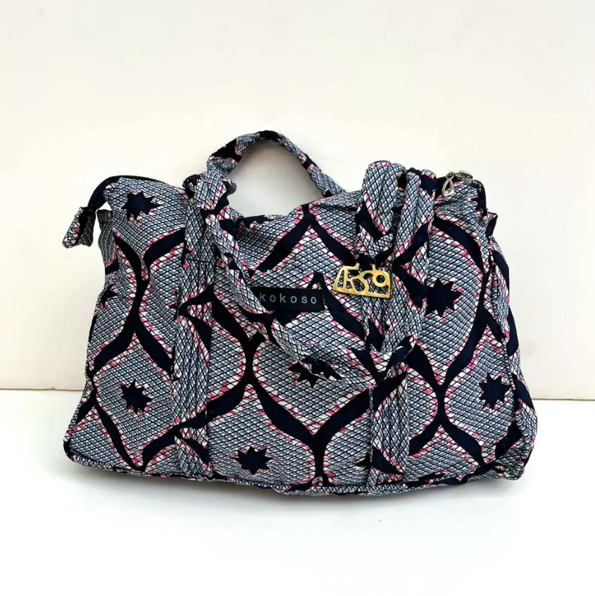 Sac à main en coton, doublé, imprimé "blockprint", avec deux poches à l’intérieur et une à l’extérieur.