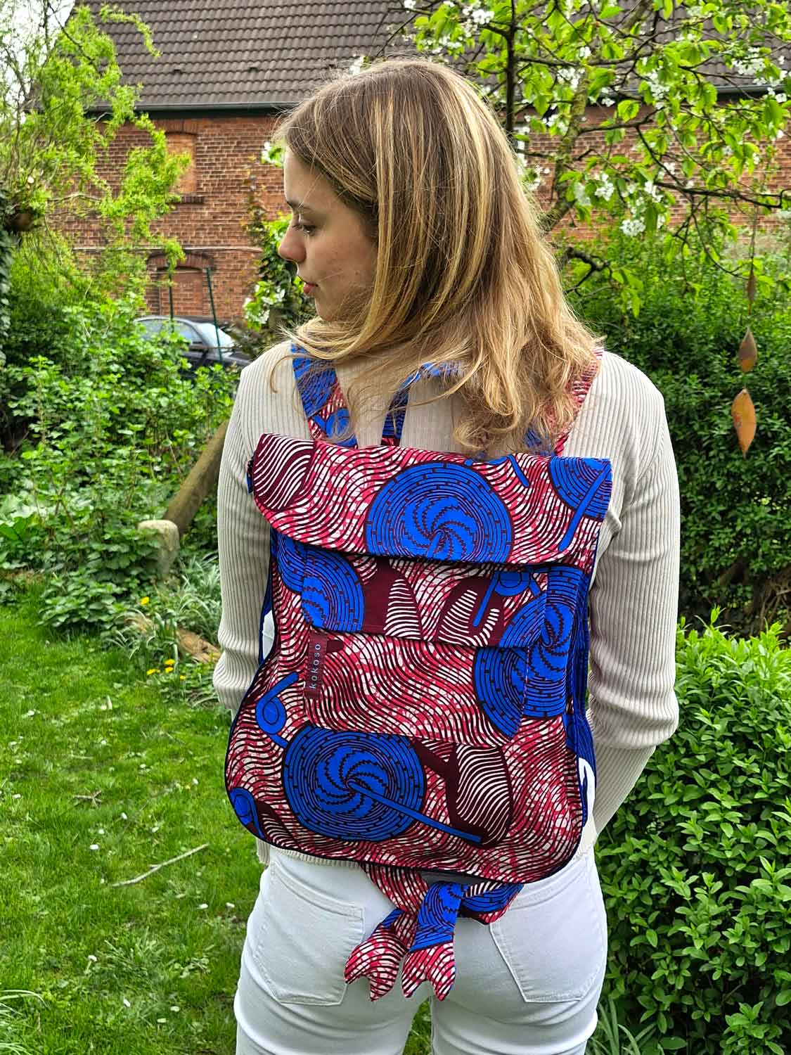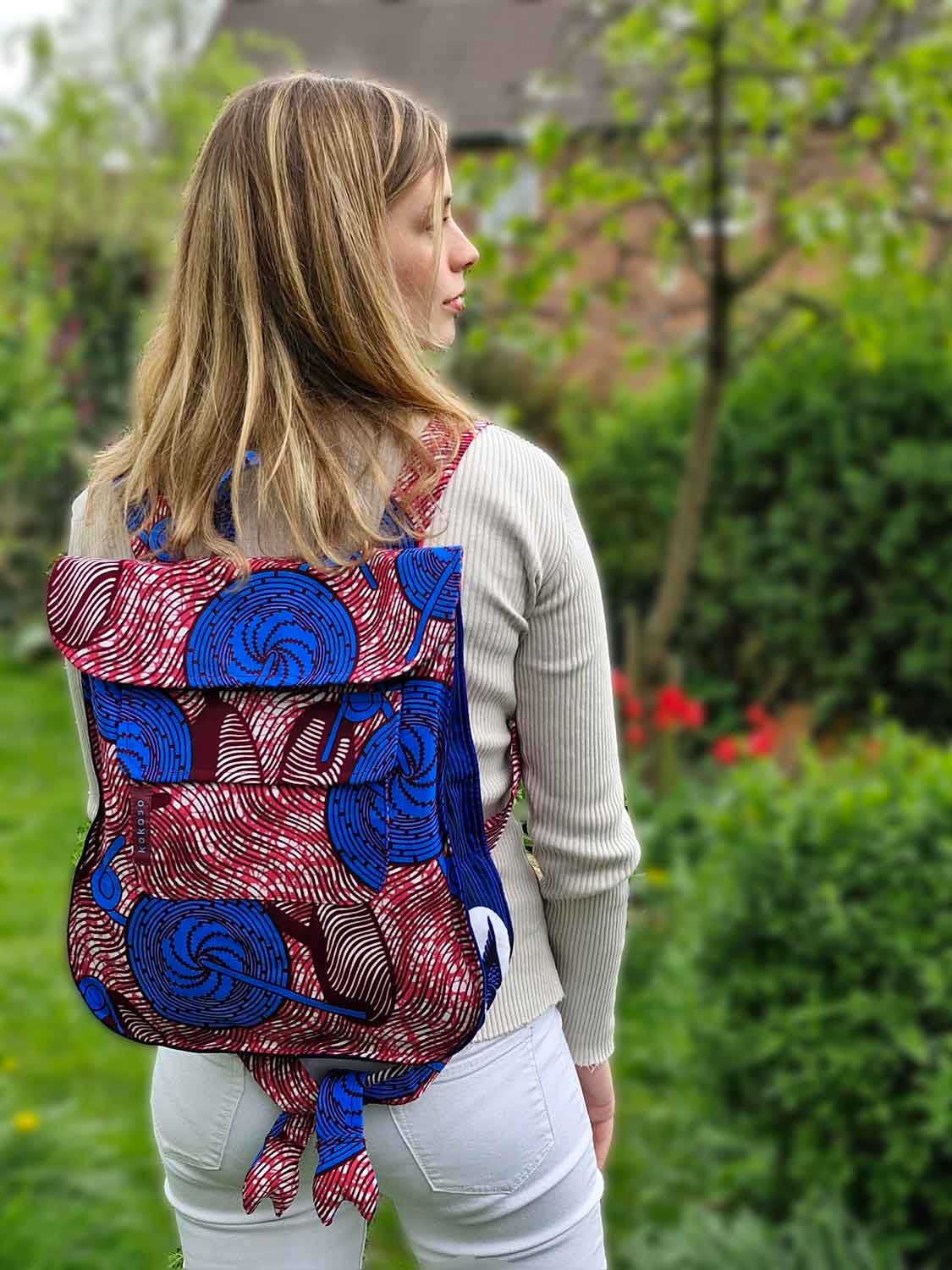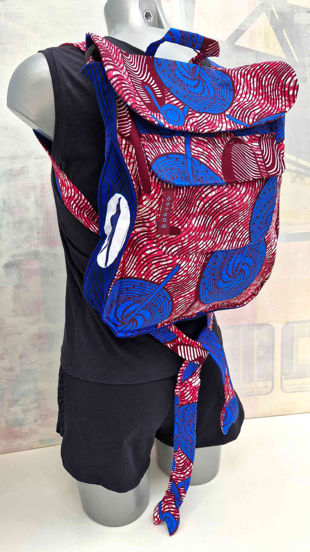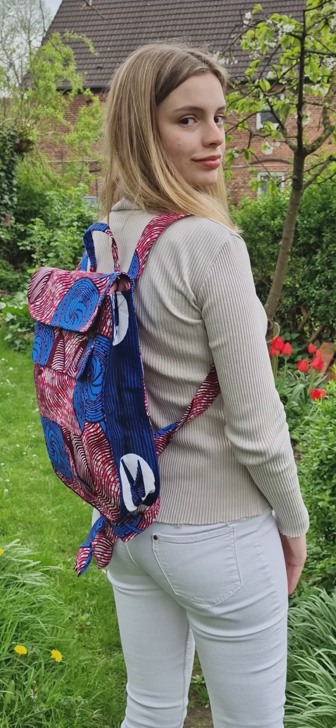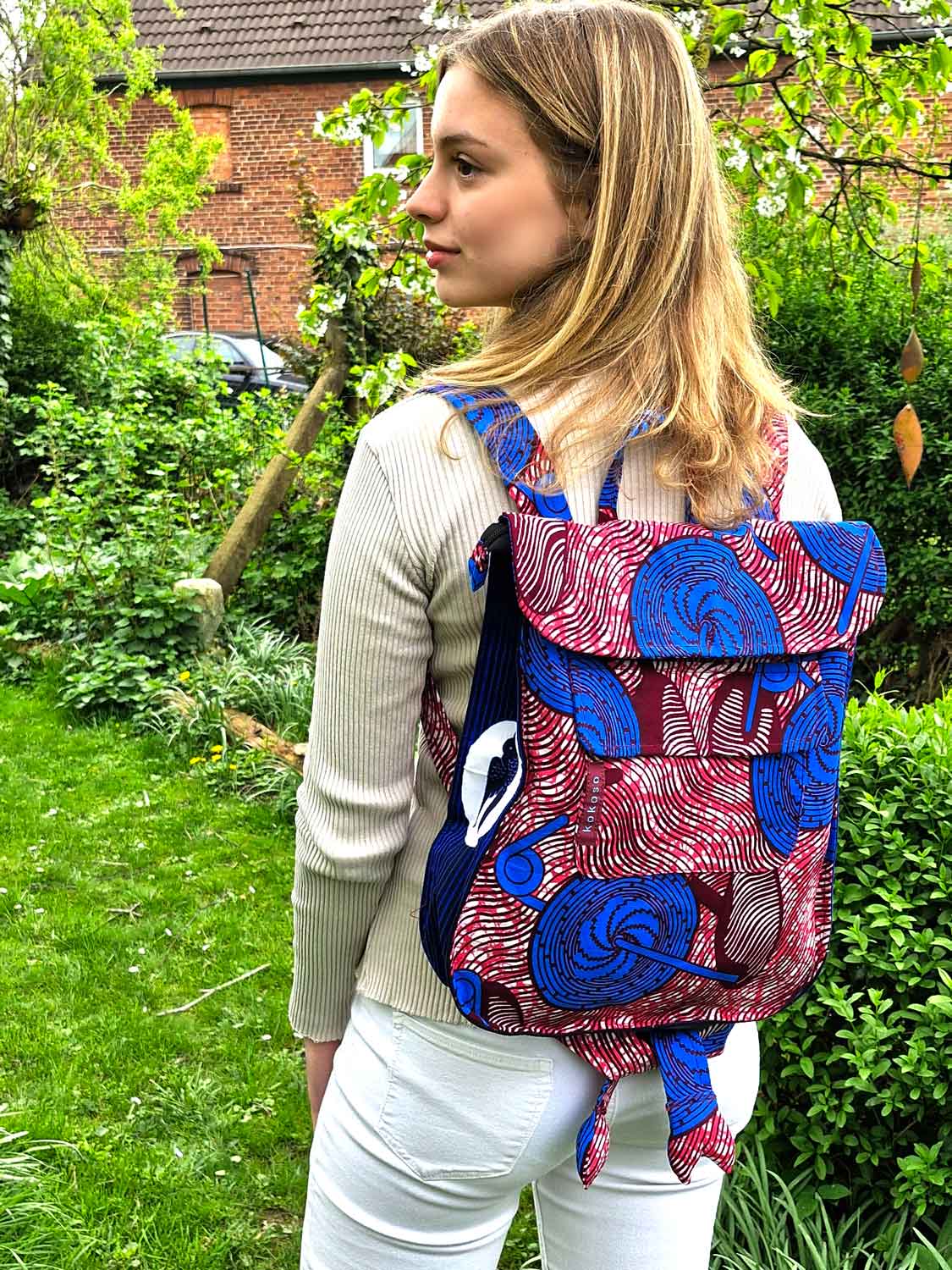 Grand sac à dos en coton doublé. Agréable et léger à porter il offre beaucoup de place à l'intérieur. Il a une poche à l'intérieur, et à l'extérieur une devant et une derrière.