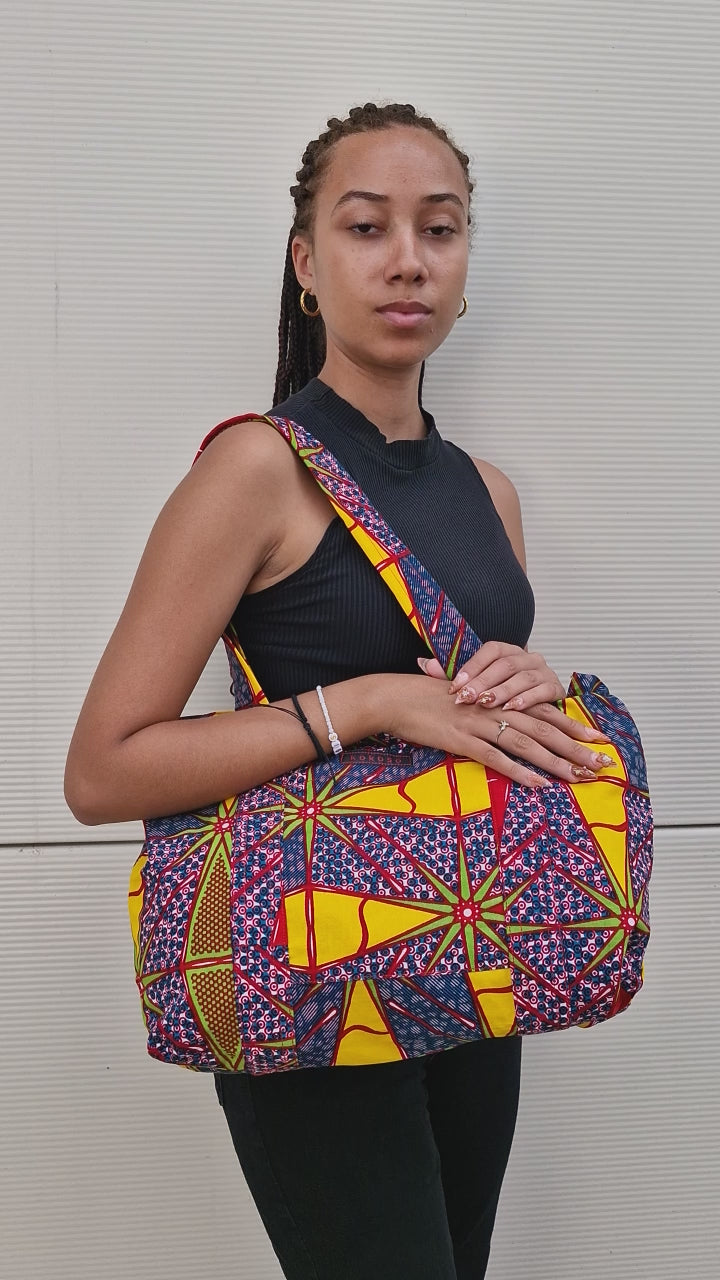 Le sac à main Afro-pop se distingue par son style géométrique et en même temps coloré et contemporain.