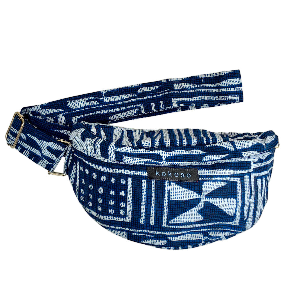 Sac banane, doublé, en blockprint imprimé, coton avec une poche devant, une à l'intérieur et une à l'extérieur derrière près du corps