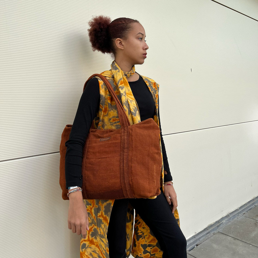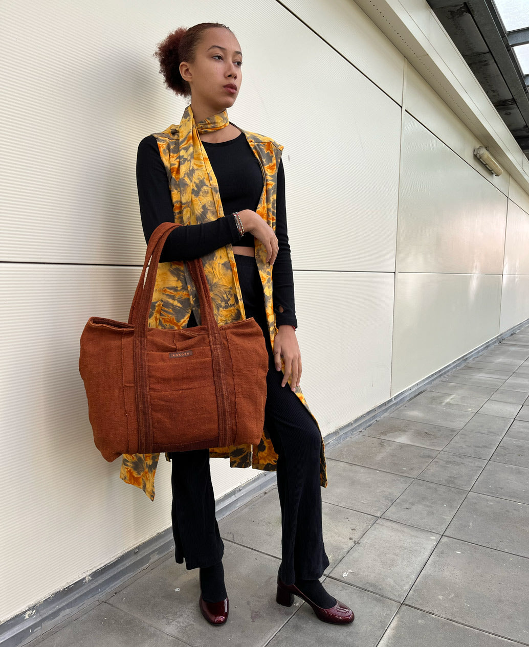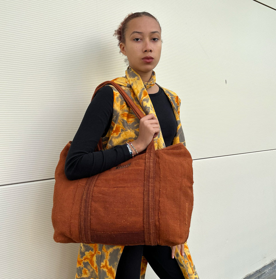 La teinte rouge brique de ce sac, appelée "rouge chasseur", est obtenue à partir de plantes utilisées par l’ethnie Dozon, les chasseurs traditionnels de la région. Cette couleur riche et profonde raconte l’histoire de générations qui ont perpétué cette technique, aujourd’hui encore très appréciée dans la mode contemporaine. Ce sac en coton artisanal rehausse l’élégance de votre tenue, en apportant une touche de caractère tout en mettant en valeur la matière naturelle et éco-responsable.