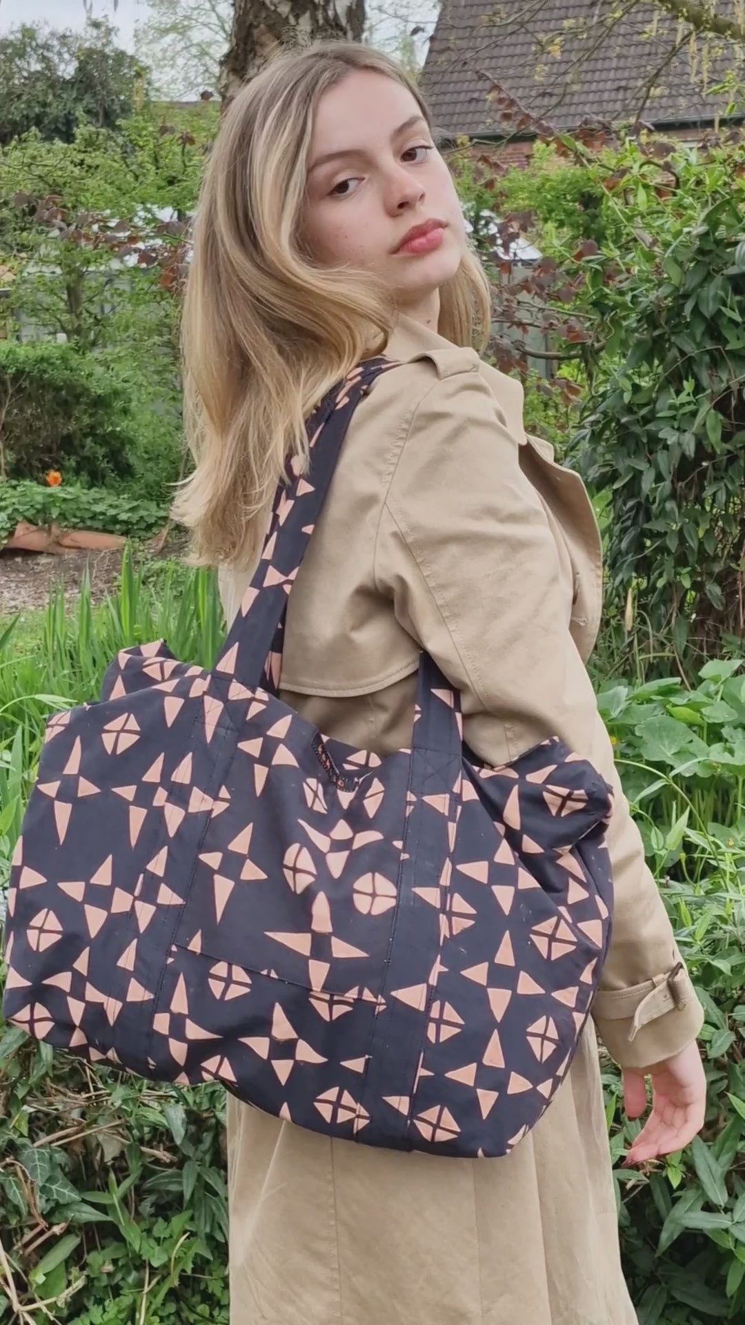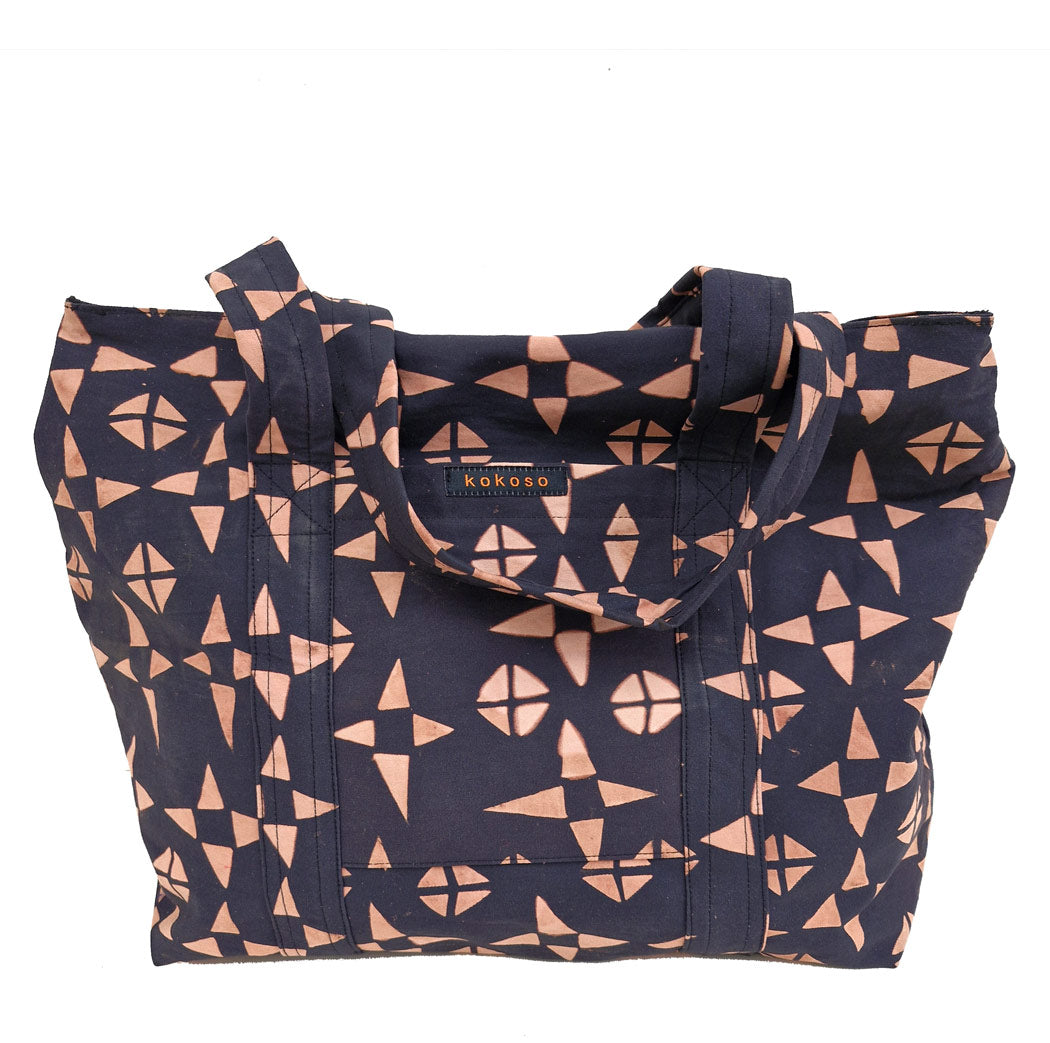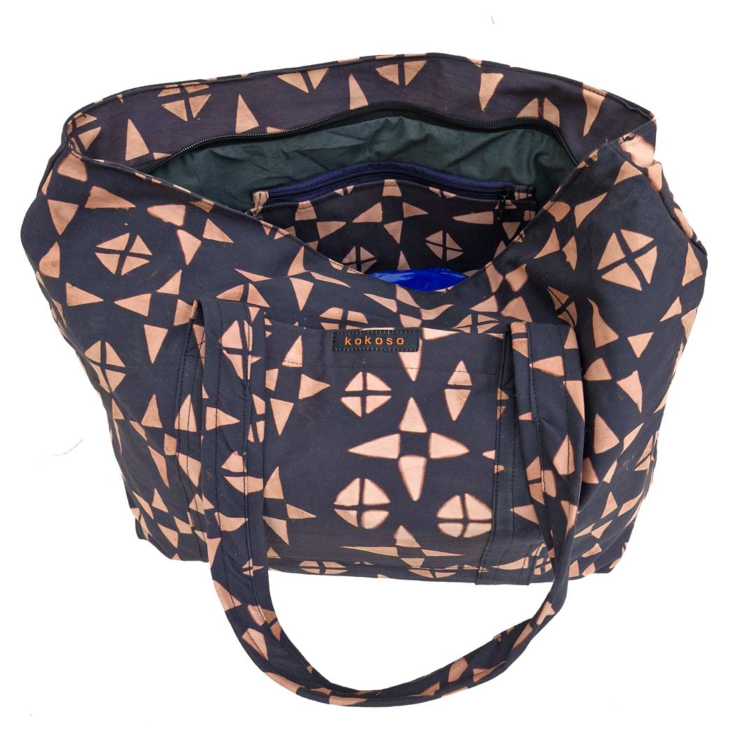 Grand sac à main en bogolan, une technique ancestrale naturelle de batik. Il est doublé, avec une poche à l'intérieur et une devant. Idéal pour le voyage du week-end ou un beau et précieux accessoire pour le sport ou la baignade.